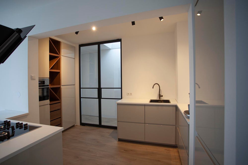 – beautiful steel pivot doors between hall/living room and hall/kitchen;