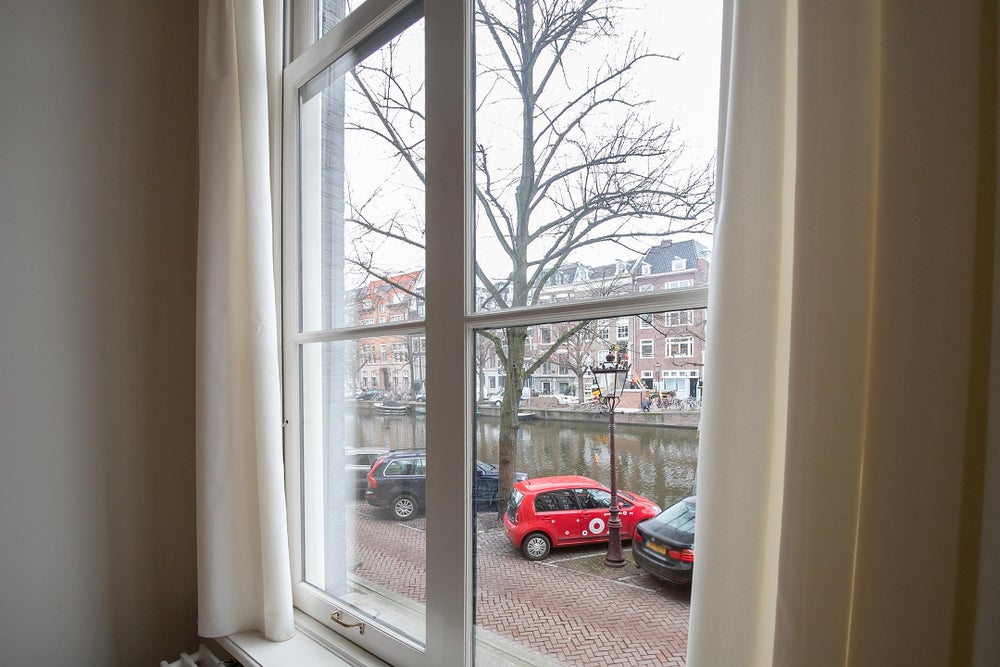 Ruime, lichte woonkamer met prachtig uitzicht over de Keizersgracht