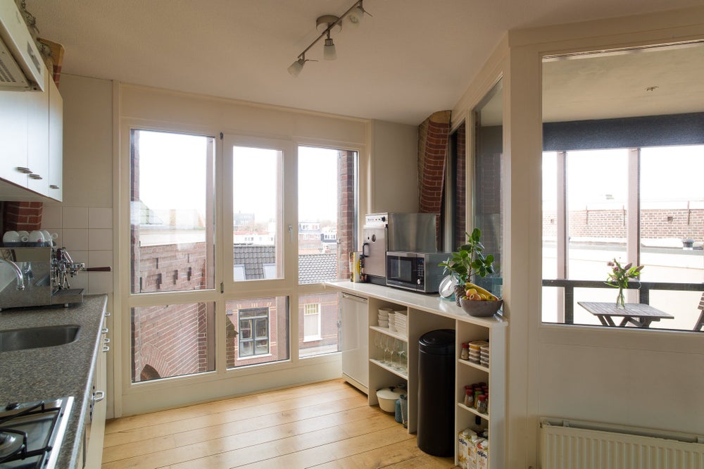 – 3e etage: entree/hal met intercom, meterkast en modern toilet met fontein, 2 ruime slaapkamers, badkamer met ligbad/douche en wastafel, lichte woonkamer met balkon (loggia) en open keuken met diverse inbouwapparatuur.