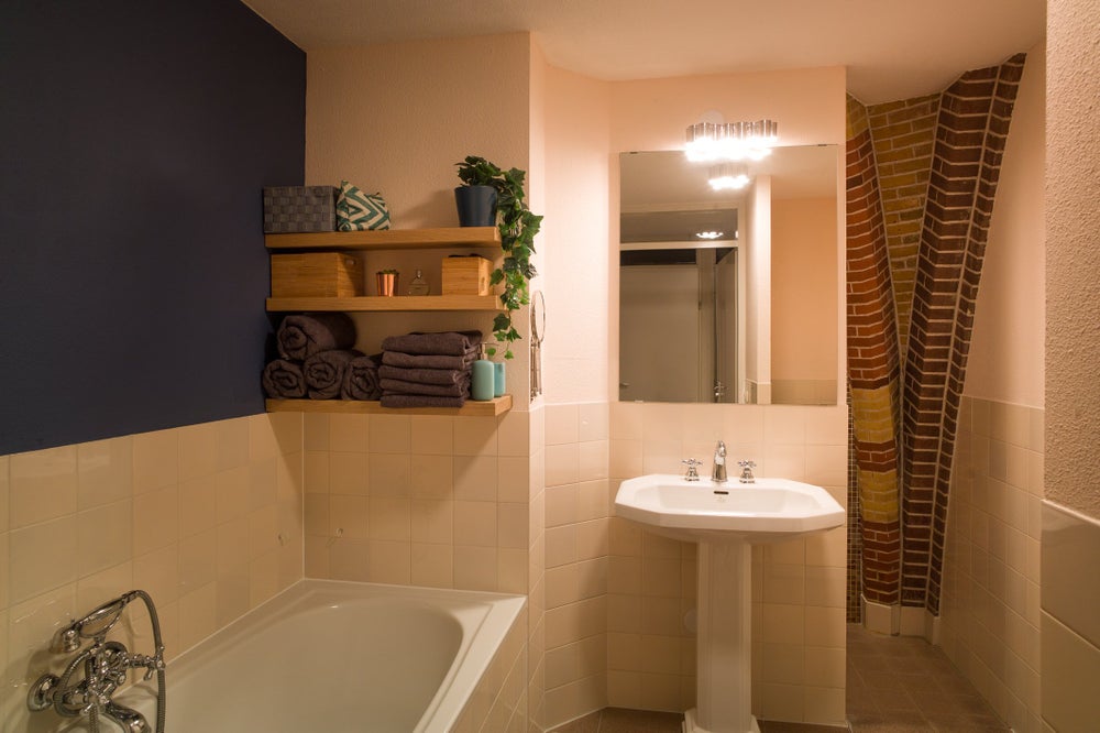 Vanwege de twee ruime slaapkamers zijn er veel woonmogelijkheden voor dit appartement. De badkamer is voorzien van een ligbad en een sfeervolle douche.