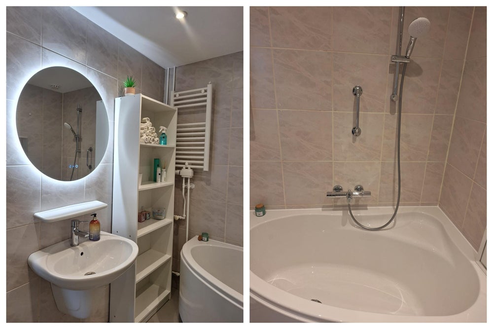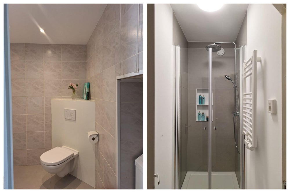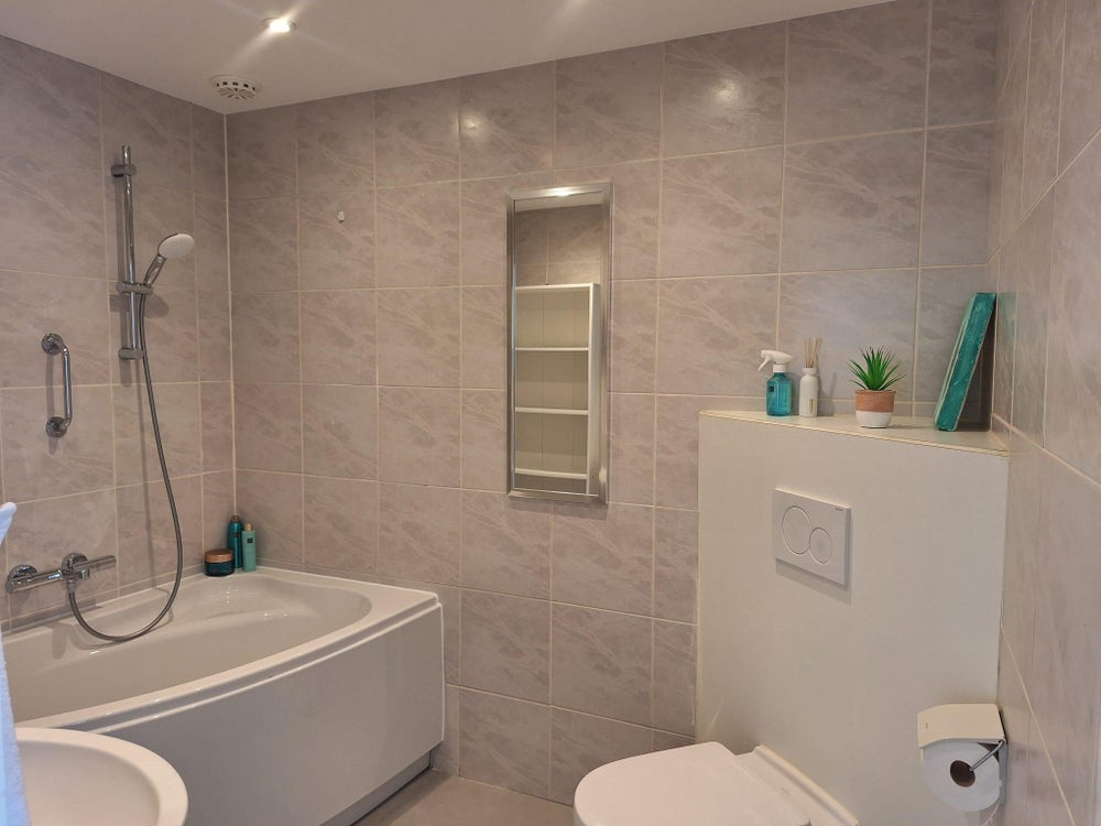 *Badkamer 1* – Recent gerenoveerd. Ligbad, douche, wastafel, wasmeubel, toilet, anti-condens spiegel, handdoekradiator. Wasmachine inbegrepen.